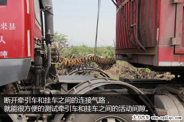 那應(yīng)該怎樣判斷是它們之間間隙大了呢?其實(shí)也很容易,具體操作方法:拉住掛車手剎(沒有的車型可以把牽引車和掛車之間的氣路連接斷開),讓掛車緊急制動(dòng)停在原地。