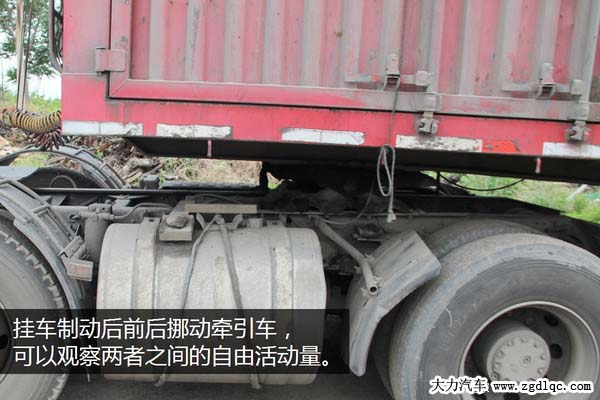 兩人配合,一個(gè)人駕駛牽引車向前、向后反復(fù)活動(dòng)幾次,另一個(gè)人在旁邊觀察牽引盤和掛車是否有相對(duì)的間隙,如果有很容易就能觀察的到。