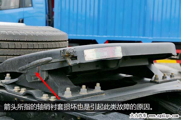 牽引車相對(duì)載貨車來(lái)說(shuō)更容易出現(xiàn)加減油門有沖擊感的故障,因?yàn)樗蛼燔囀莾蓚(gè)部分,它們的連接點(diǎn)也就成為此種故障的高發(fā)區(qū)域。大家都知道把牽引頭和掛車連接起來(lái)的部件是牽引鞍座和牽引銷,它們之間如果配合間隙過大肯定會(huì)造成加減速有強(qiáng)烈的沖擊感。