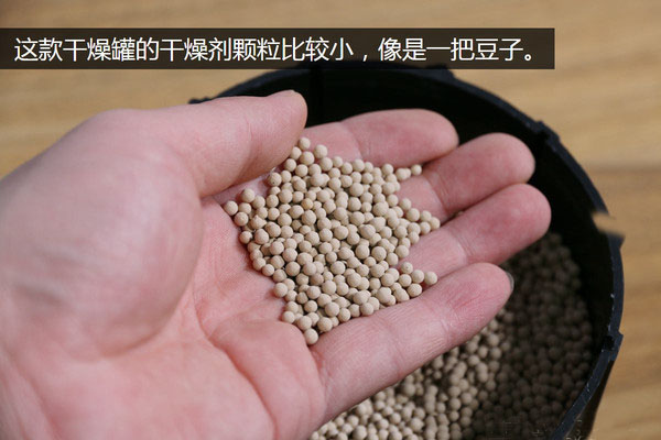 打開蓋子之后,這個干燥罐真正的核心部分,干燥劑終于展現(xiàn)在了我們的面前,用手抓了一些出來發(fā)現(xiàn)顆粒比較細小,太像某種豆子了,而我的同事則認為這玩意像貓屎。