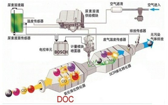 在幾近苛刻的國Ⅴ排放法規(guī)面前,僅依靠以上的技術(shù)還是不夠的,必須綜合使用排氣后處理技術(shù)來控制排放。