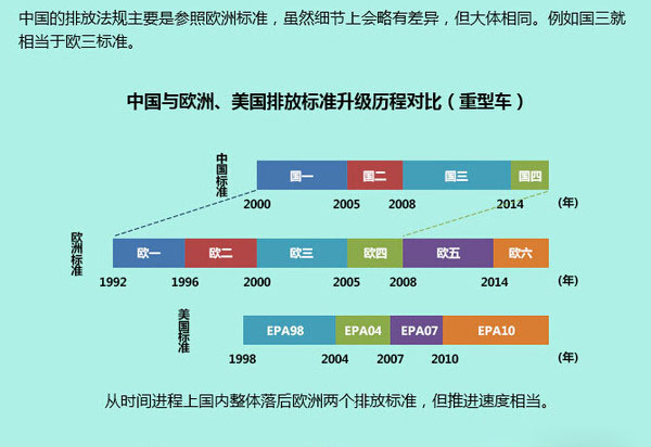 我國的排放標準主要是參照歐洲標準,雖然細節(jié)上略有差異,但大體相同。例如國五就相當于歐五標準。目前,我國已經(jīng)到了國四和國五切換之際,但還落后歐美一個層次,而且現(xiàn)在環(huán)境問題是全球問題,我國又是車輛大國,排放問題受到國際關(guān)注,所以排放升級加快是大勢所趨。
