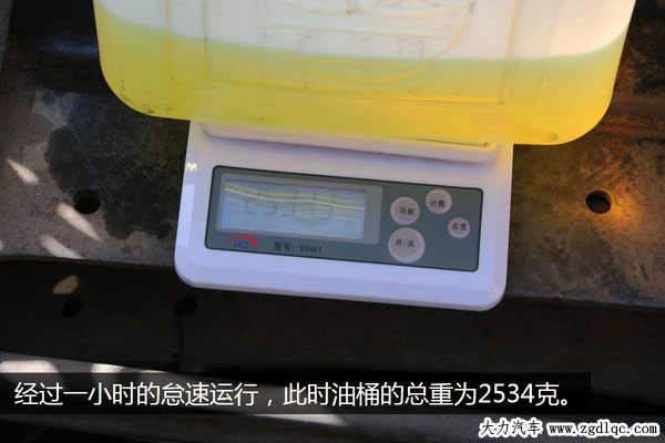 測(cè)試時(shí)間為一個(gè)小時(shí)整,到時(shí)間后我們立即關(guān)閉了發(fā)動(dòng)機(jī),此時(shí)油桶內(nèi)的柴油相比剛開(kāi)始測(cè)試的時(shí)候下降了大約一半左右,但這只是目測(cè),最終的精確結(jié)果需要通過(guò)稱重來(lái)測(cè)量。