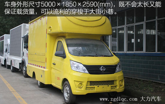 該款長安售貨車車型的外觀尺寸是5000×1850×2590(mm),車身既不會太大也不會太小,不僅可以保證載貨量,而且還可以流利的穿梭在大街小巷。
