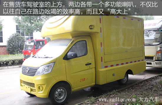 駕駛室上方還配備了多功能的喇叭,在售賣產(chǎn)品的時候我們只需要提前將其錄音,這樣它就可以幫我們做宣傳了。不像以往那樣,需要站在路邊大聲吆喝來引起路人注意。而且喇叭的音量可以調(diào)節(jié),其傳播的范圍要遠遠高于人的聲音,不僅提高了效率,而且給人的感覺又特別的“高大上”。