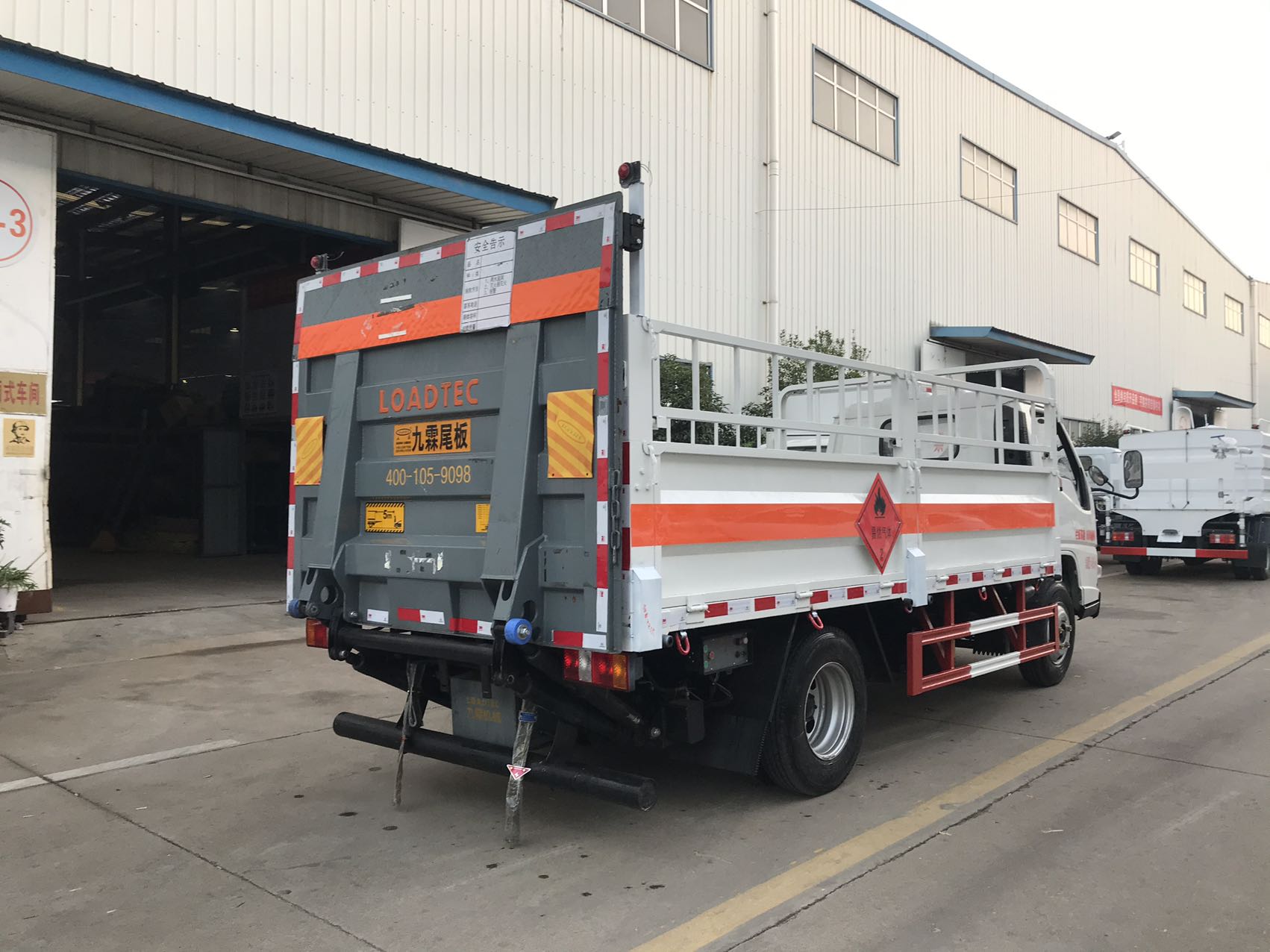 嚴(yán)格按照公告尺寸制作,底板采用高強鋼,底板上鋪靜電膠皮,帶高欄,配備滅火器,三角頂燈,靜電拖帶等,嚴(yán)格按照國家危險品法規(guī)進行“易燃?xì)怏w”標(biāo)識粘貼等。