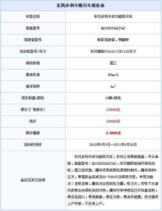 東風(fēng)多利卡多功能吸污車降價(jià)3000元