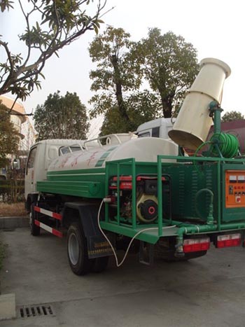 綠化多功能噴藥車采用新的風(fēng)進(jìn)噴霧方式,裝配噴藥專用柴油機(jī)組,為噴藥提供專一動(dòng)力來(lái)源。風(fēng)機(jī)安裝可360°調(diào)整的直流噴嘴兩只,沖洗寬度可達(dá)到25米以上,調(diào)整角度后,還可對(duì)道路面旁的高大樹木進(jìn)行沖洗;裝有兩只可噴淋后灑裝置,主要對(duì)垃圾場(chǎng)道路進(jìn)行保潔和壓塵,灑水寬度可達(dá)18米以上;高射槍的射程可達(dá)30米以上,可調(diào)節(jié)成霧狀或柱狀進(jìn)行噴灑。