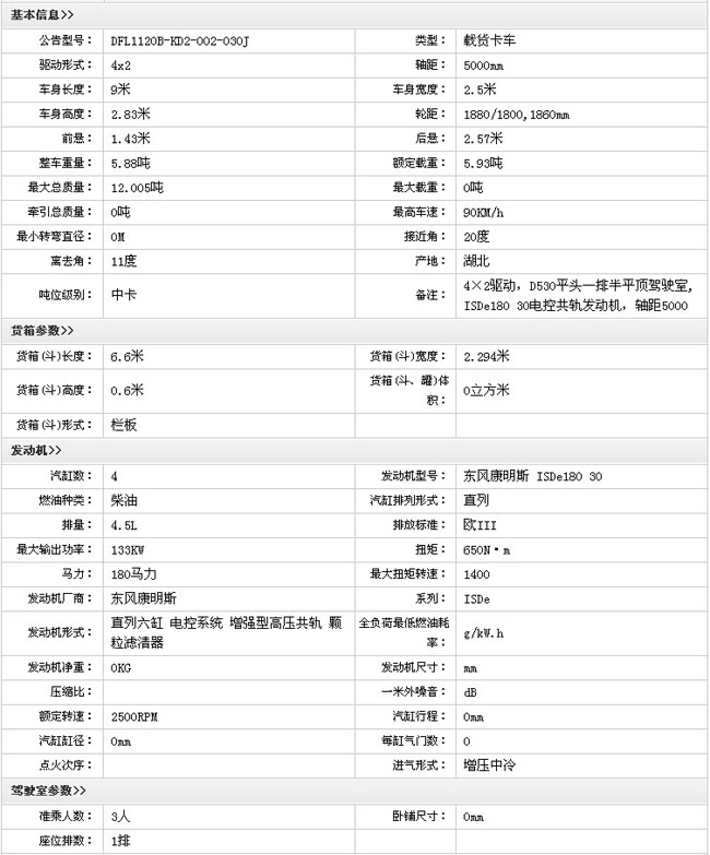 東風(fēng)天錦(180馬力)4X2排半載貨汽車(chē)