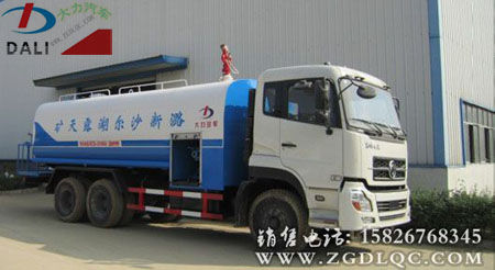 目前使用的比較廣泛的有東風金霸灑水車、東風多利卡灑水車、東風140型灑水車(長頭)、東風145型灑水車(平頭)、東風153型灑水車(平頭)、東風天錦灑水車、東風天龍DFL1250A8型灑水車(后雙橋)。灑水車前裝有鴨嘴形噴嘴或圓頭沖嘴,后面裝有圓柱形灑水噴嘴或蓮蓬頭噴嘴,后部有工作平臺,裝配有水炮。后部還可裝8個噴嘴。