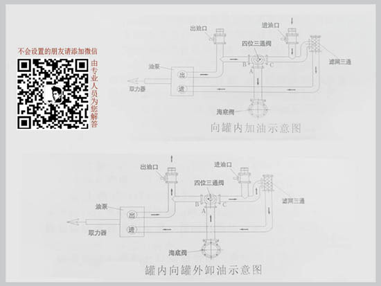 例如,①你要抽油(泵進(jìn)油)時(shí),油罐車油路是這樣走的:打開(kāi)進(jìn)油口閥門→ 經(jīng)過(guò)濾網(wǎng)三通→ 進(jìn)入油泵→ 出油泵→ 到出油口→ 四位三通球閥B-A → 油罐車海底閥→ 進(jìn)油了。這條油路中以經(jīng)過(guò)的環(huán)節(jié),閥門打開(kāi),其它閥門關(guān)閉。